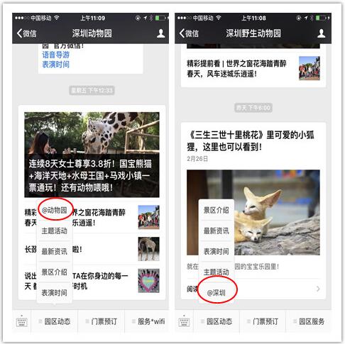 深圳野生動物園官方微信服務號與訂閱號俊入駐@深圳平臺。?