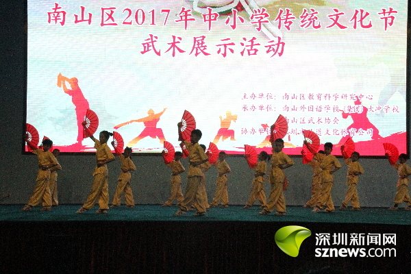 南山區(qū)2017年中小學(xué)傳統(tǒng)文化節(jié)武術(shù)展示活動(dòng)由南山區(qū)教育科學(xué)研究中心主辦,南山外國(guó)語(yǔ)學(xué)校(集團(tuán))大沖學(xué)校和南山區(qū)武術(shù)協(xié)會(huì)承辦。南山區(qū)教育科學(xué)研究中心主任余耀賢介紹,為進(jìn)一步弘揚(yáng)優(yōu)秀中華傳統(tǒng)文化,落實(shí)立德樹人的根本任務(wù),南山區(qū)教育局舉行了首屆傳統(tǒng)文化節(jié)活動(dòng),開展了經(jīng)典詩(shī)詞特色展演、中小學(xué)書法大賽、中國(guó)戲曲和民族樂(lè)器比賽、中小學(xué)生圍棋大賽、傳統(tǒng)文化沙龍和專家報(bào)告等形式多樣的活動(dòng)。