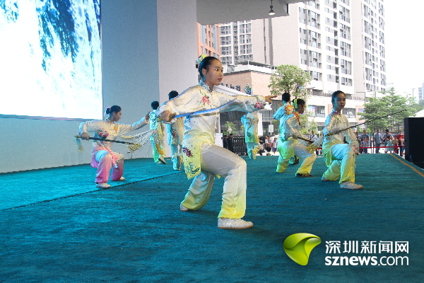 來自前海小學(xué)、西麗二中和大沖學(xué)校的老師們,也在臺上一展身手,他們出拳和刀棍展示更加虎虎有聲,氣勢如虹,英姿颯爽,霸氣十足。