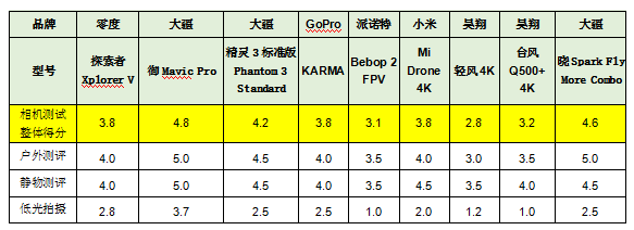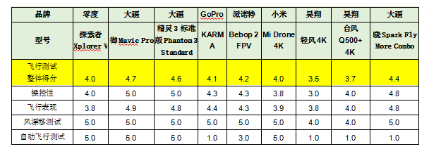 其中大疆的“御Mavic Pro”和“曉Spark Fly More Combo”表現(xiàn)出眾,獲得5分滿分。