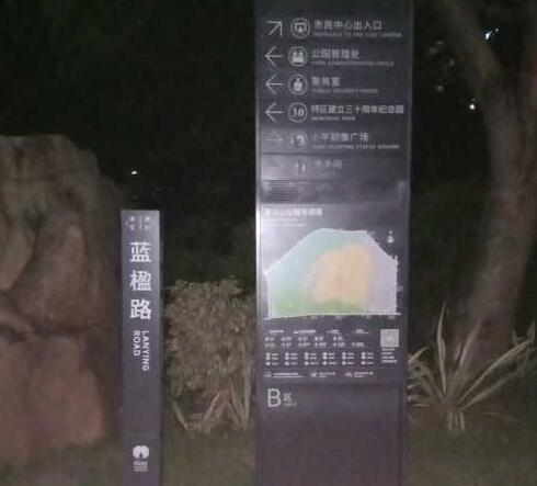 晚上游園指示牌沒燈易迷路