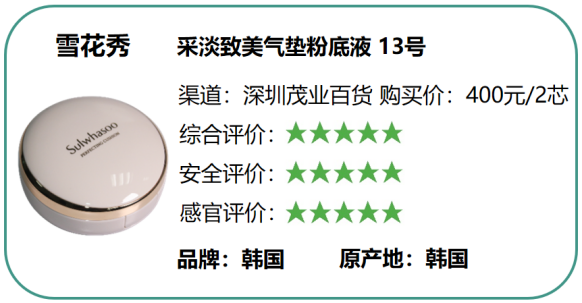 根據(jù)市場調(diào)研的結(jié)果,本次比較試驗(yàn)共抽取了8個知名品牌氣墊粉底,包括進(jìn)口品牌5個,國產(chǎn)品牌3個。工作人員模擬普通消費(fèi)者身份在深圳各大商場(天虹商場、華潤萬家、茂業(yè)百貨和太陽百貨)進(jìn)行匿名購買。