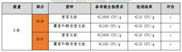 歐盟對化妝品中微生物要求更加嚴(yán)格,國標(biāo)要求5項(xiàng),歐標(biāo)要求9項(xiàng)。檢測結(jié)果顯示:8款氣墊粉底微生物檢測結(jié)果不僅符合國家標(biāo)準(zhǔn)要求,而且符合歐盟法規(guī)要求。