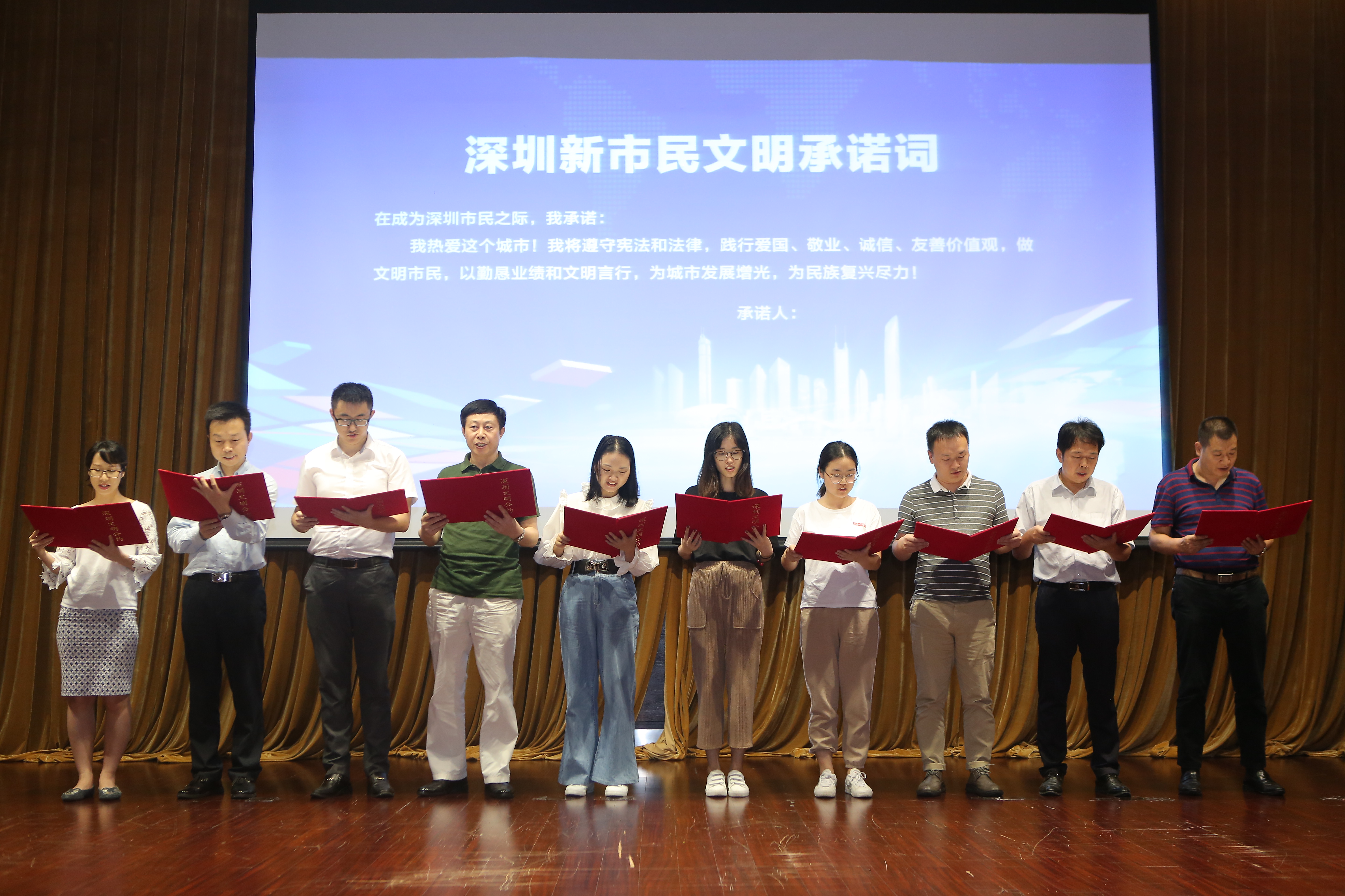 十位企業(yè)員工代表上臺宣讀深圳市民文明公約