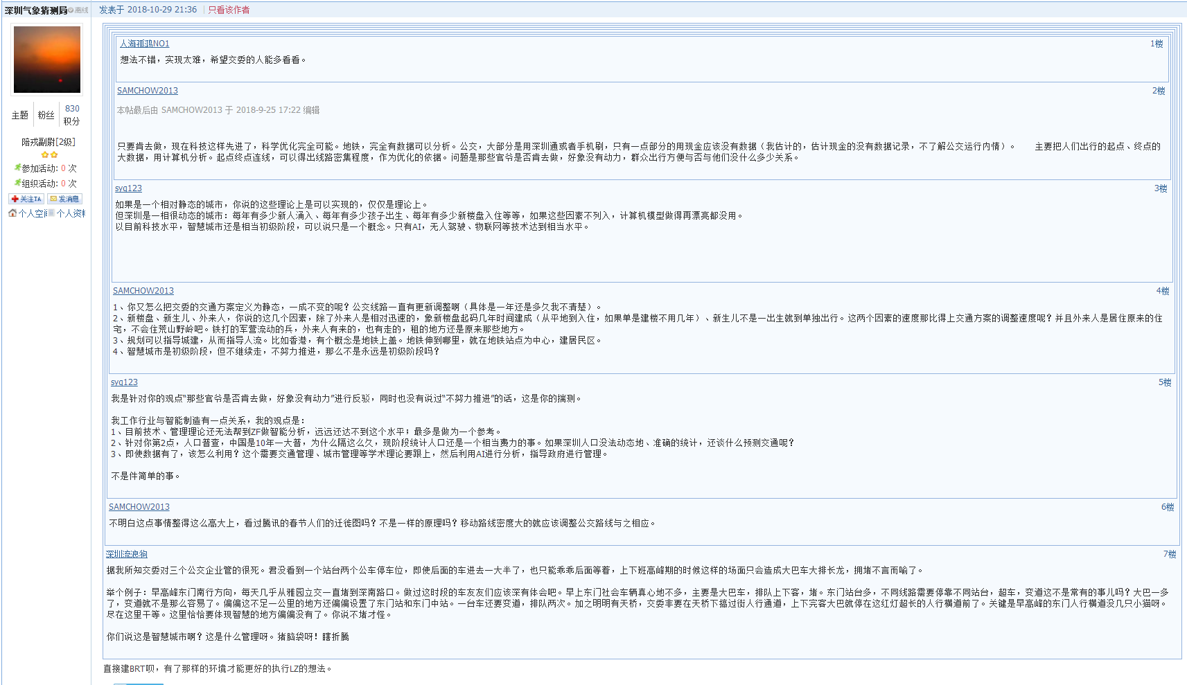 9月25日有市民在深圳論壇以《關(guān)于公交線路規(guī)劃和站臺設(shè)置的一點建議》為題發(fā)帖,自稱是曾經(jīng)的公交人和現(xiàn)在的私家車駕駛員,對深圳的公交出行一口氣提出3個意見。帖文中最為吸引人眼球的觀點就是“將全市各站點進行編號,采用計算機技術(shù),對編號站點進行排列組合,每個方向連續(xù)的10個站點有三條線路覆蓋,超出三條屬于線路密度高或規(guī)劃不合理?!眴芜@一句話就在跟帖中引發(fā)了針鋒相對的辯論,有支持的市民認為:主意不錯,實現(xiàn)起來應(yīng)該也難度不大。現(xiàn)在不是整天提什么物聯(lián)網(wǎng)、大數(shù)據(jù)、智慧城市么,這個不就是這些高新技術(shù)在公交出行方面的應(yīng)用。不看好的市民則認為:目前技術(shù)、管理理論還無法做智能分析,遠遠還達不到這個水平,“最多是做為一個參考”。