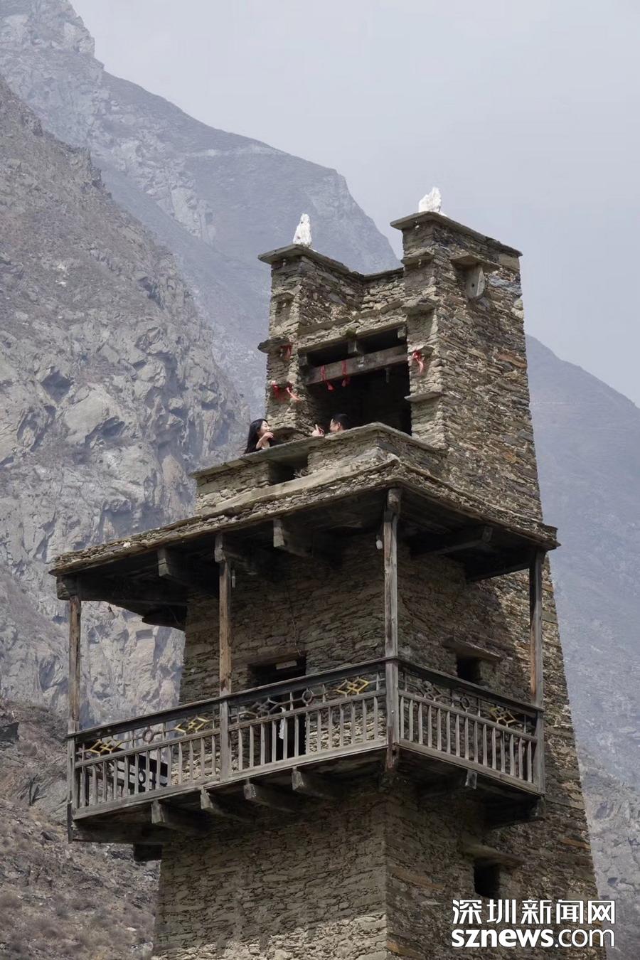 碉樓是整個(gè)寨子的標(biāo)志性建筑,目前僅存兩座,一座是陳仕明家的住宅,另一座雄踞在寨子對(duì)面的河岸上。碉樓分為9層,高30米左右,各層四方開(kāi)有射擊窗口,頂樓的鐘孔是作為傳遞消息用的。李仁奇 攝