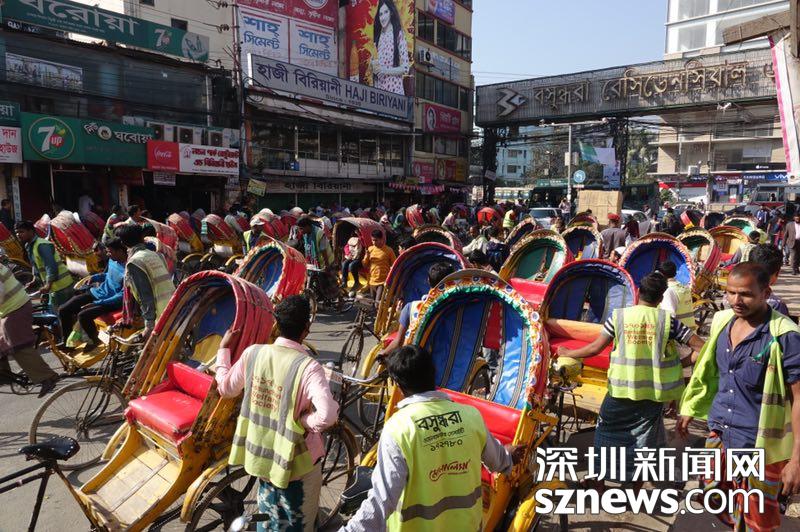 首都達卡匯聚了1100多萬人,生存與忙碌是這個城市的主調,鮮艷的色彩,比如花里胡哨的三輪車和婦女大紅大綠的服裝只是其裝扮而已。李仁奇攝
