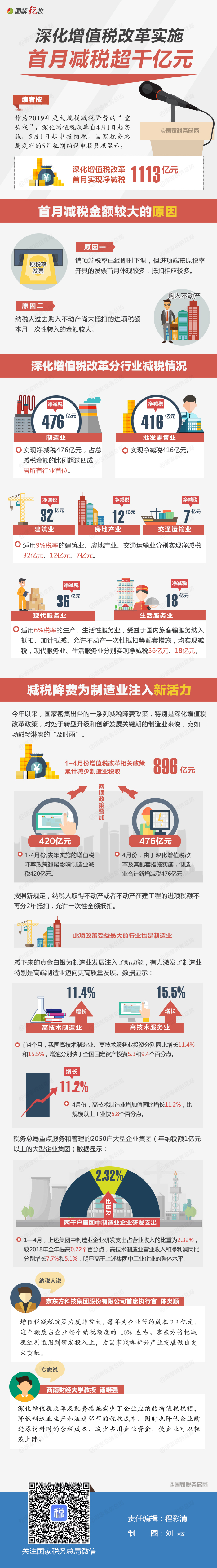 圖解深化增值稅改革實(shí)施首月減稅超千億元