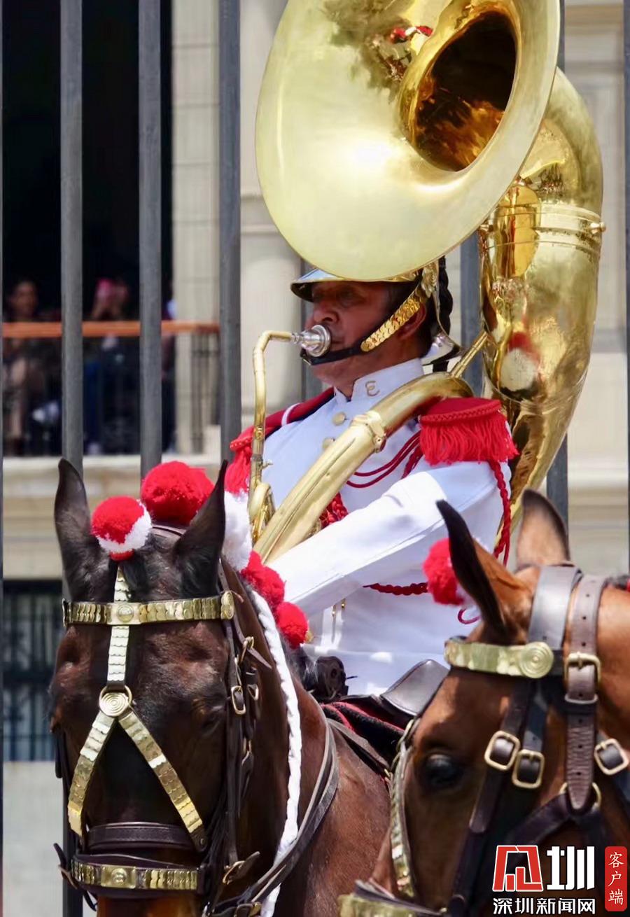 可能也與秘魯民俗有關(guān),秘魯國家軍樂隊(duì)也會(huì)同時(shí)在利馬總統(tǒng)府門前廣場公開盛裝演練,市民都可以近距離觀賞。李仁奇攝