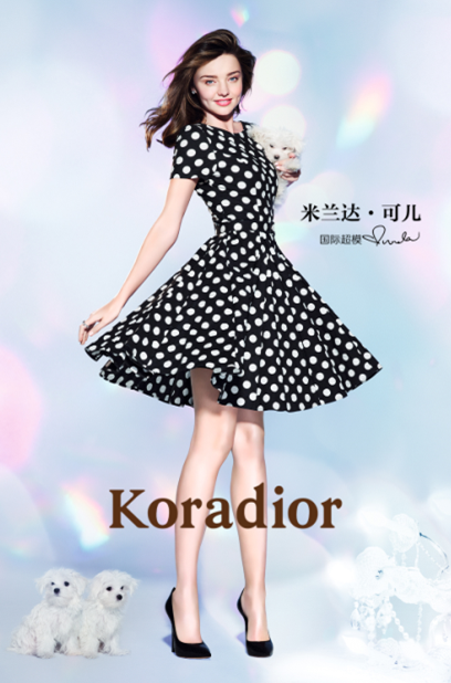 Koradior邀請(qǐng)國(guó)際超模米蘭達(dá)·可兒成為其形象代言人。春夏形象大片登陸深圳機(jī)場(chǎng);