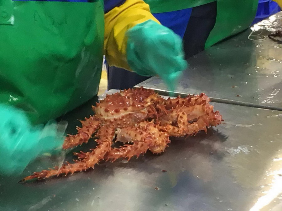 網(wǎng)友在蜘蛛蟹加工基地。湯有國攝