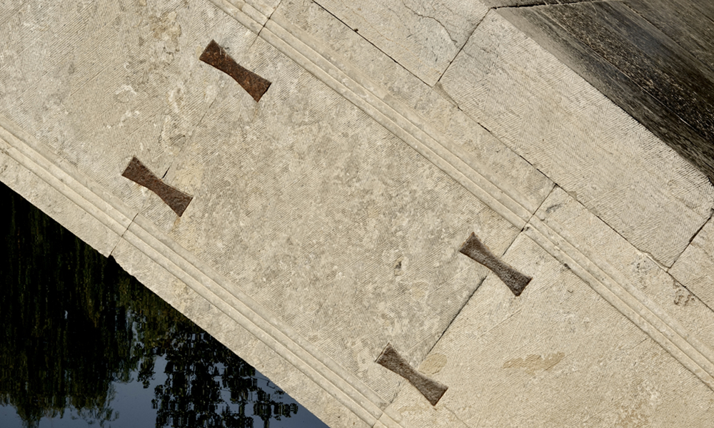 二、趙州橋的橋臺為低拱腳、淺基礎、短橋臺,這些都增強了橋臺的抗傾覆能力。李仁奇 攝