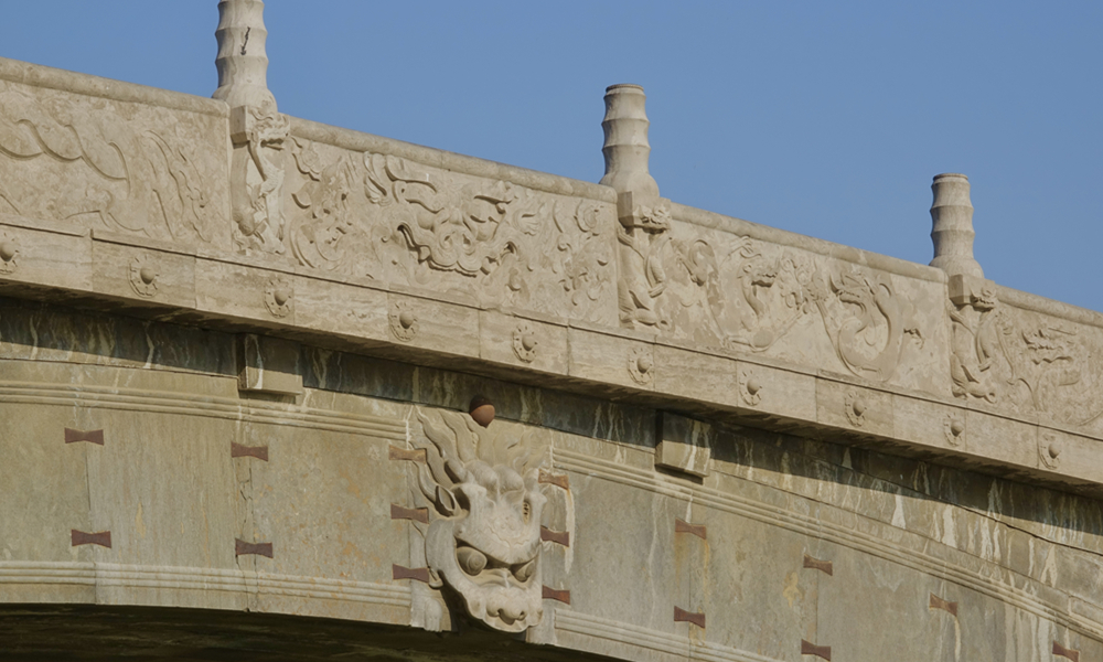 此次修繕在全面測量的基礎上采用原來的護拱石、鉤石、腰鐵、鐵拉桿和收分五種做法,還在橋面上下加設了二粘三油防水層(二層防水亞麻布和三層瀝青),防止漏水腐蝕現(xiàn)象發(fā)生。橋面的所有欄板、望術按早期式樣新制。李仁奇 攝