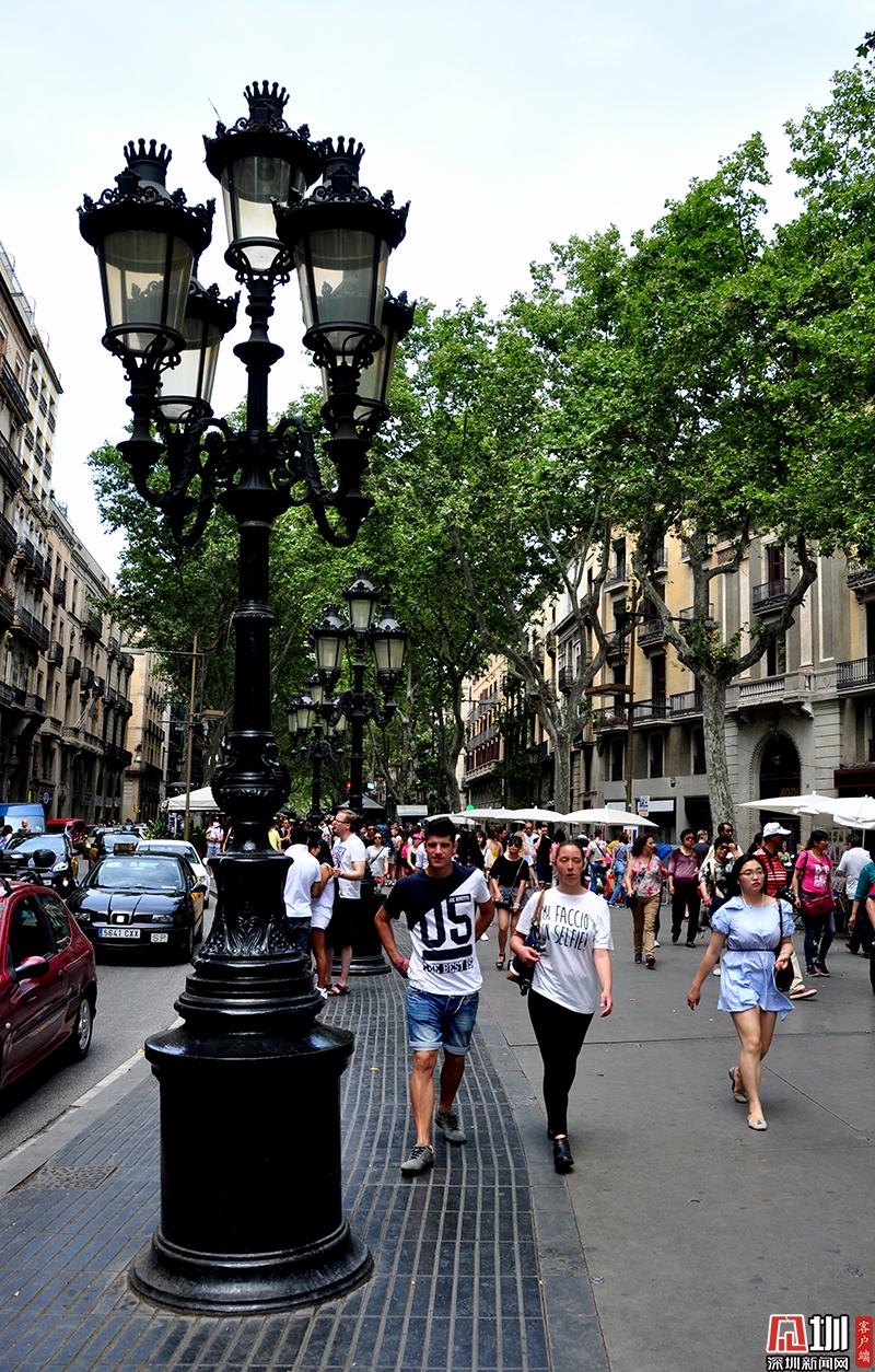 這條街連接著老城區(qū)加泰羅尼亞廣場(chǎng)和哥倫布紀(jì)念碑廣場(chǎng)兩個(gè)主要景點(diǎn),每天游人如織。圖為蘭布瑯花街。李仁奇 攝