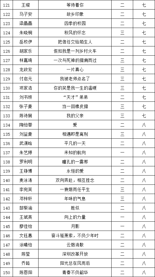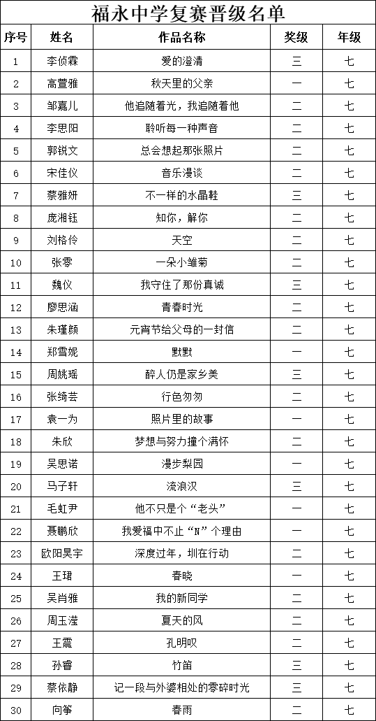 自2021年1月,活動(dòng)征稿啟動(dòng)以來,獲得了深圳市廣大中小學(xué)生、教師、文學(xué)愛好者的熱烈響應(yīng)積極參與,吸引了深圳百余所學(xué)校的上萬人關(guān)注報(bào)名?,F(xiàn)公布福永中學(xué)晉級(jí)復(fù)賽名單如下: