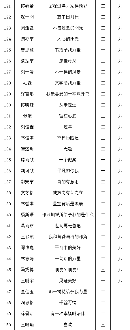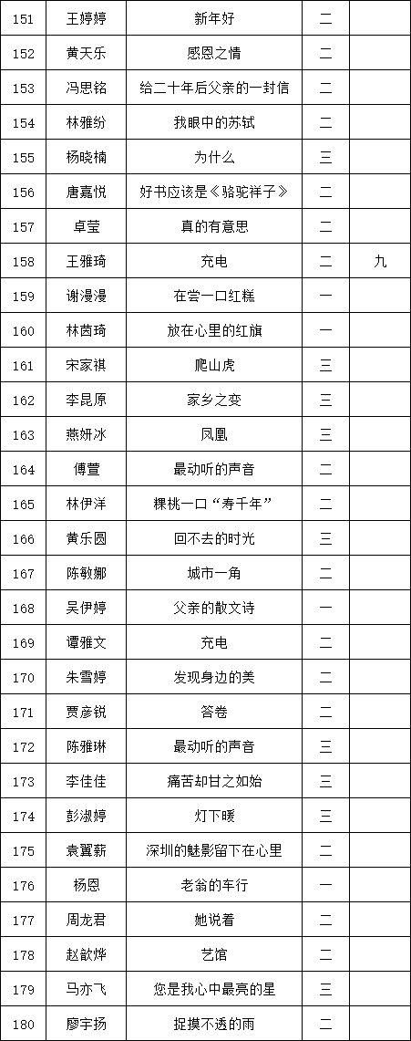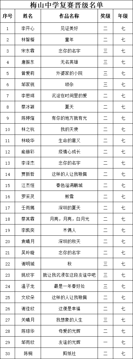 自2021年1月,活動(dòng)征稿啟動(dòng)以來,獲得了深圳市廣大中小學(xué)生、教師、文學(xué)愛好者的熱烈響應(yīng)積極參與,吸引了深圳百余所學(xué)校的上萬(wàn)人關(guān)注報(bào)名?,F(xiàn)公布福田區(qū)梅山中學(xué)晉級(jí)復(fù)賽名單如下: