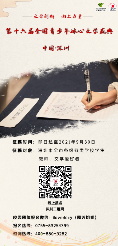全國青少年冰心文學盛典組委會中國·深圳官網及公眾號發(fā)布