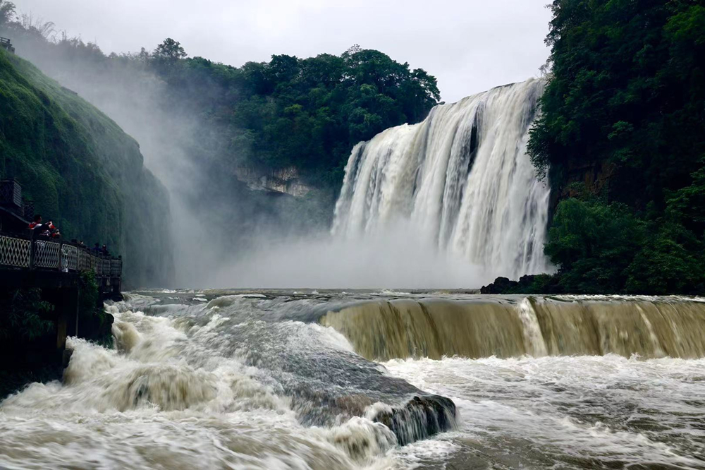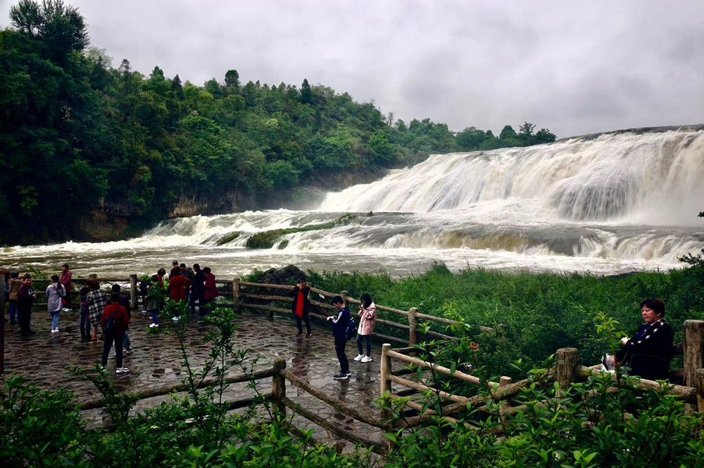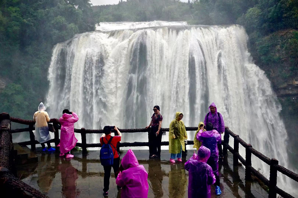 黃果樹瀑布的游客數(shù)以萬計,但是能夠在豐水期觀賞到特別壯觀景象的游客卻是少數(shù)。李仁奇 攝