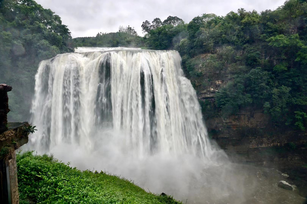 水大時,瀑布濺珠飛灑到100多米高的黃果樹街上,兩三里外能聽到雷鳴般的響聲。李仁奇 攝