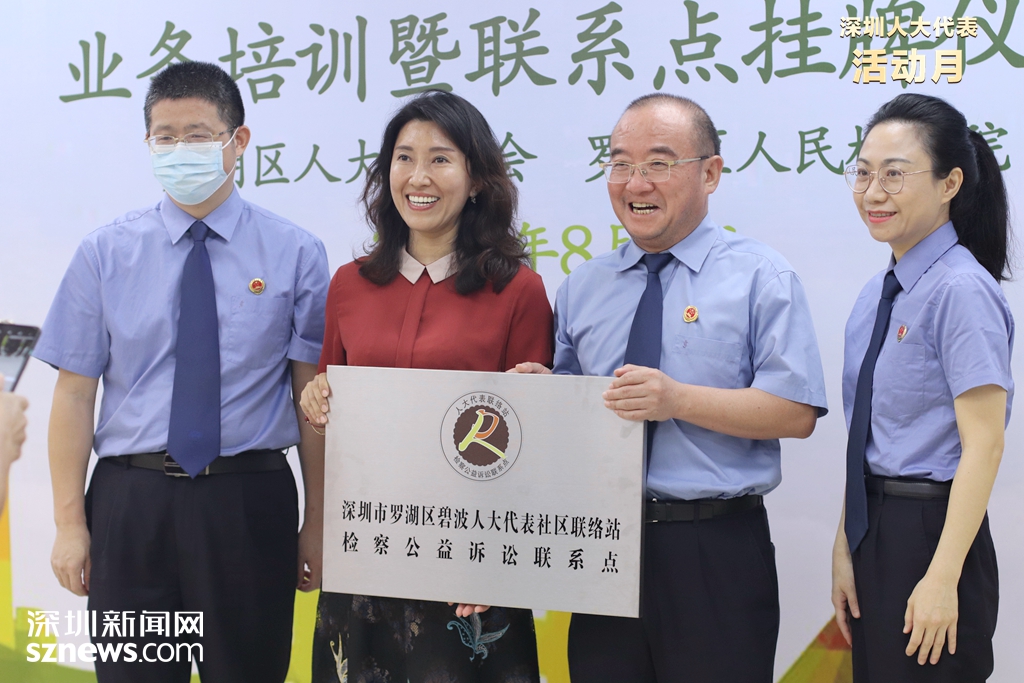 羅湖區(qū)碧波人大代表社區(qū)聯(lián)絡(luò)站檢查公益訴訟聯(lián)系點(diǎn)掛牌儀式現(xiàn)場。