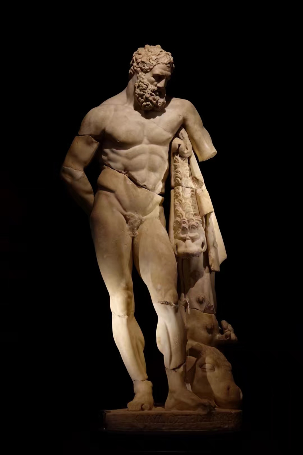 赫拉克勒斯石棺,它的側(cè)立面描繪赫拉克勒斯斬殺九頭蛇、與獅子搏斗、偷盜金蘋果等12項(xiàng)苦力后升為神的傳奇故事,浮雕保存完整、栩栩如生,展現(xiàn)了古羅馬精湛的雕塑工藝。李仁奇 攝