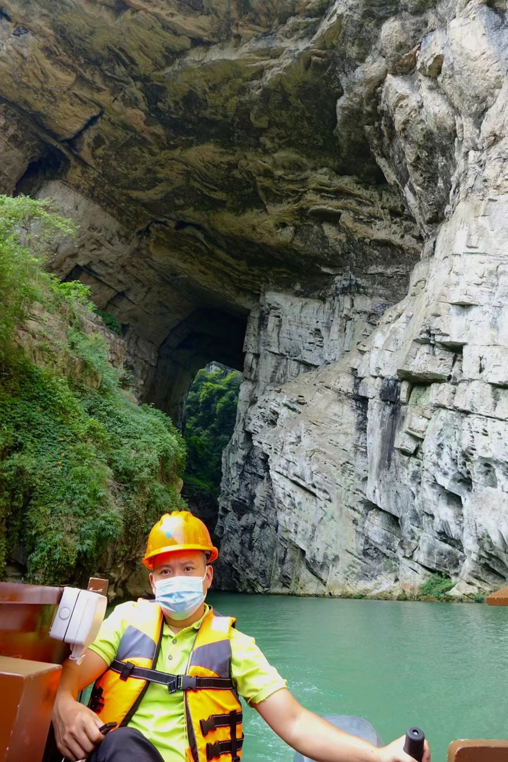 “暗河”指的是這條河流穿行溶洞的部分。里面漆黑一片,伸手不見(jiàn)五指,但中段有“蒼天有眼”(實(shí)為天生橋)奇觀,末端有形似“天下第一刀”的天空,令人稱奇。李仁奇 攝