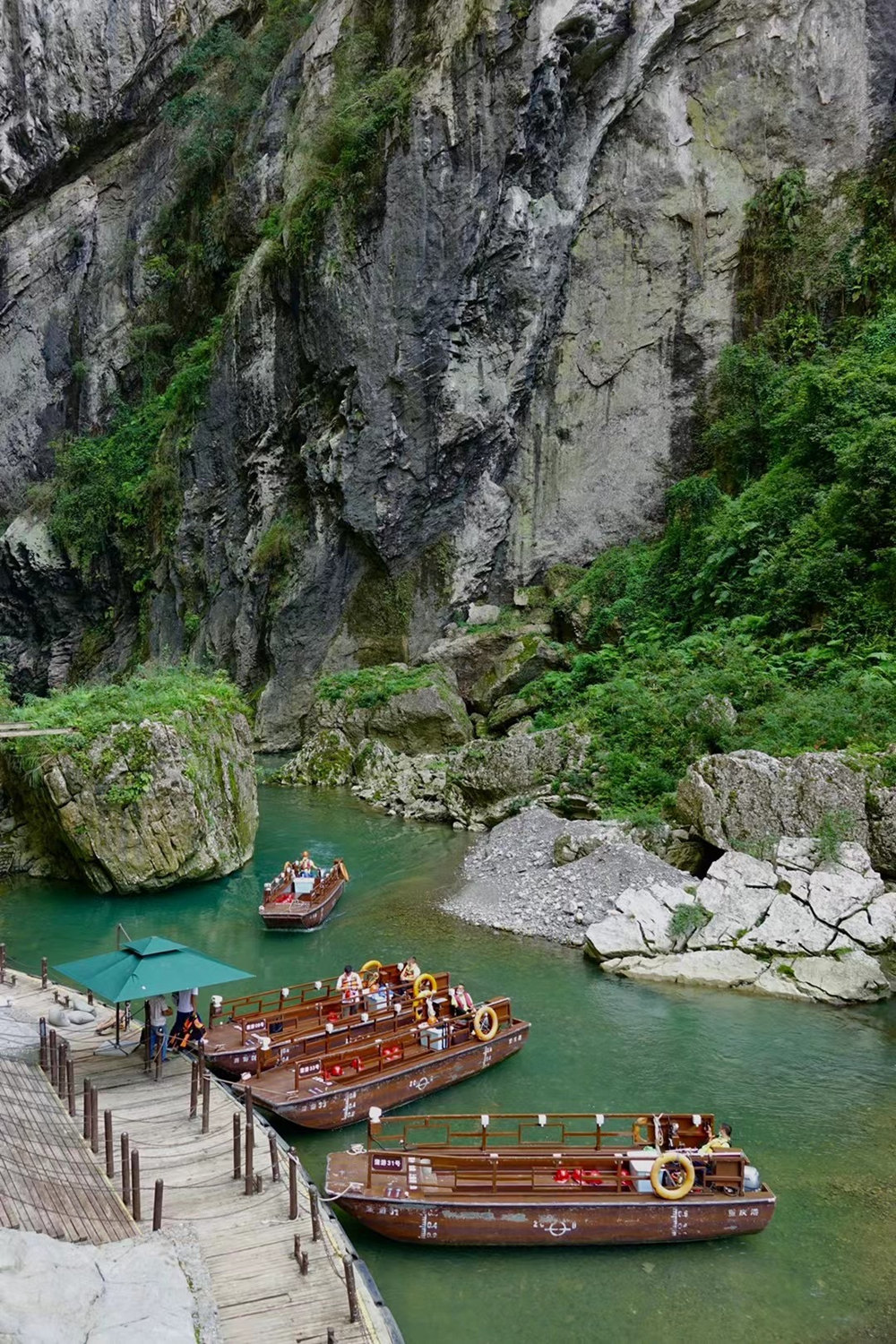 河邊碼頭,幾艘游船躺在水面上,等待著游客的到來(lái)。李仁奇 攝