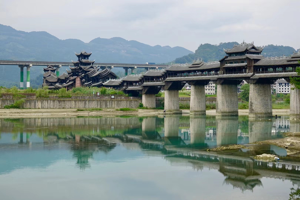 橫跨于濯水古鎮(zhèn)阿蓬江上的超長(zhǎng)廊橋有“世界第一風(fēng)雨廊橋”之稱。李仁奇 攝