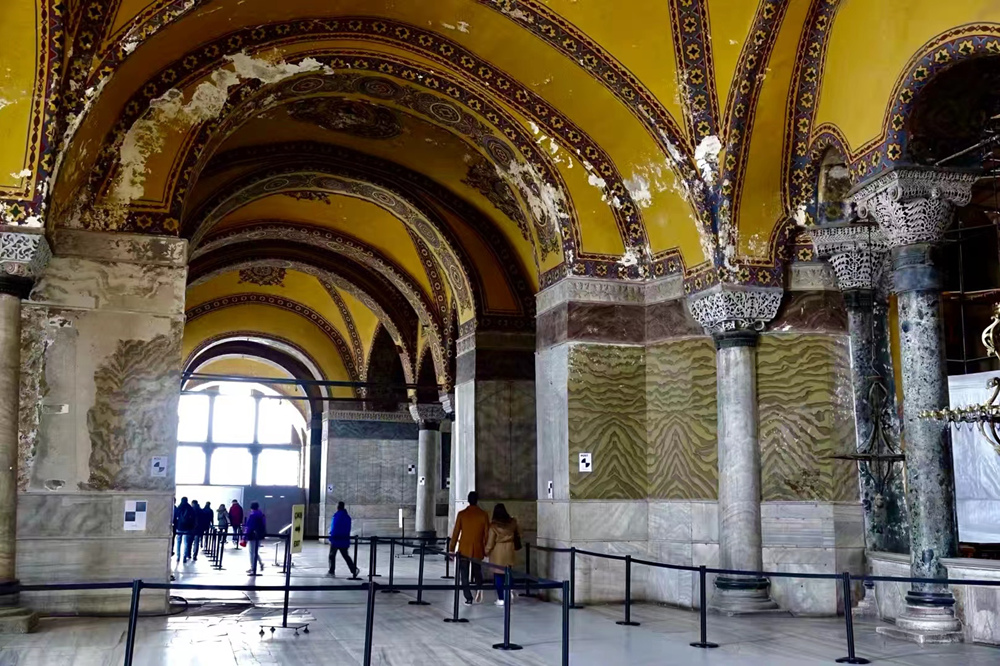 圣索菲亞大教堂內(nèi)部有140根巨大石柱,由于是從不同地方運來的,因此石料色彩不一,有些是紫色,有些又是綠色。李仁奇 攝