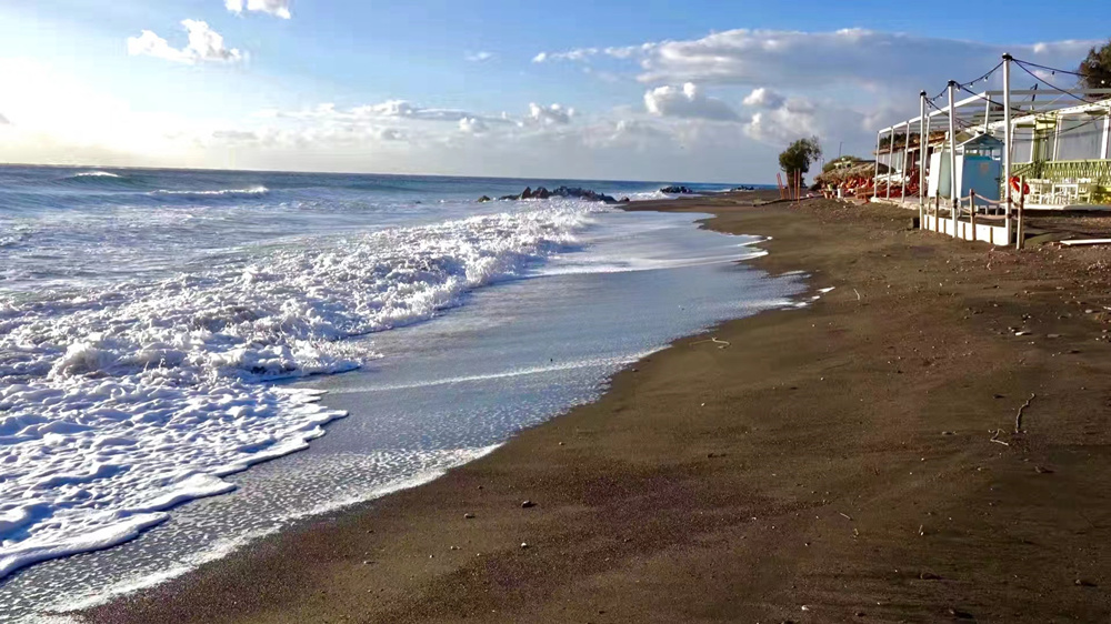 黑沙灘是圣托里尼有名的礦物沙灘,在旅游旺季時(shí)游人非常多。這里的沙灘其實(shí)是火山噴發(fā)后的火山灰沉積下來的小沙石,經(jīng)過長期的風(fēng)化形成了如今的黑沙灘。李仁奇 攝