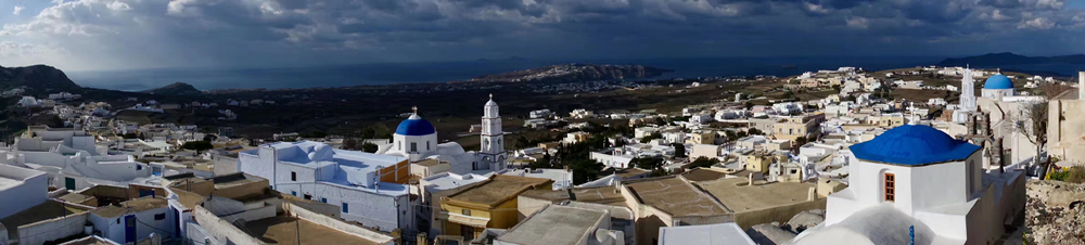 圣托里尼由3個(gè)小島組成,其中兩個(gè)島有人居住,中間的1個(gè)是沉睡的火山島。歷史上,這里的火山曾多次爆發(fā),以公元前1500年的一次最為劇烈。李仁奇 攝