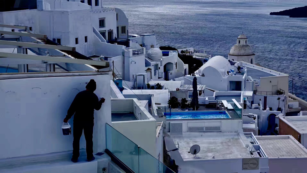 現(xiàn)在的圣托里尼島是希臘最著名的旅游勝地,以其充足的陽光,宜人的地中海氣候、獨(dú)特的地形地貌和藍(lán)白色的建筑吸引著全球的游客。李仁奇 攝
