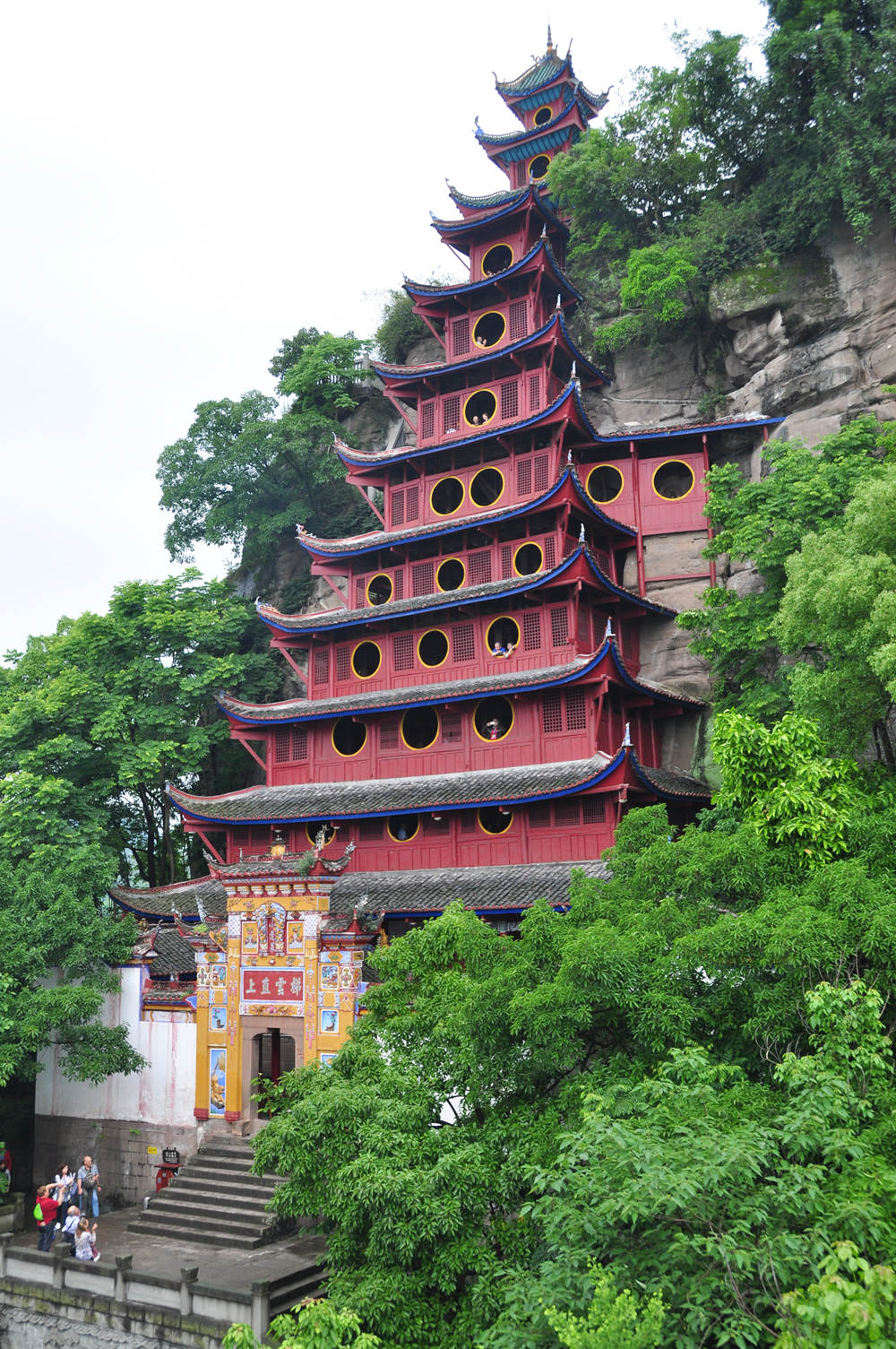全寨共分兩部分,山下9層和山上3層錯落有致,從遠處眺望12層樓重檐高聳,渾然一體,宏偉壯觀,共高56米,閣內(nèi)每層石壁上均有題詠。李仁奇 攝