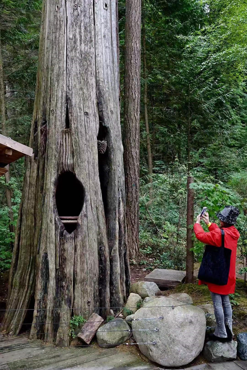 吊橋公園里面很多原始樹木的年齡比他們現(xiàn)在所屬的國度和城市的年紀還要大。直徑超過一米的樹彼彼皆是,其腰圍連兩個成年男人人都難以合抱過來。李仁奇 攝