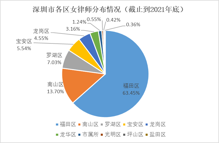 三、深圳女律師區(qū)域分布分析:超過(guò)60%的女律師在福田執(zhí)業(yè)