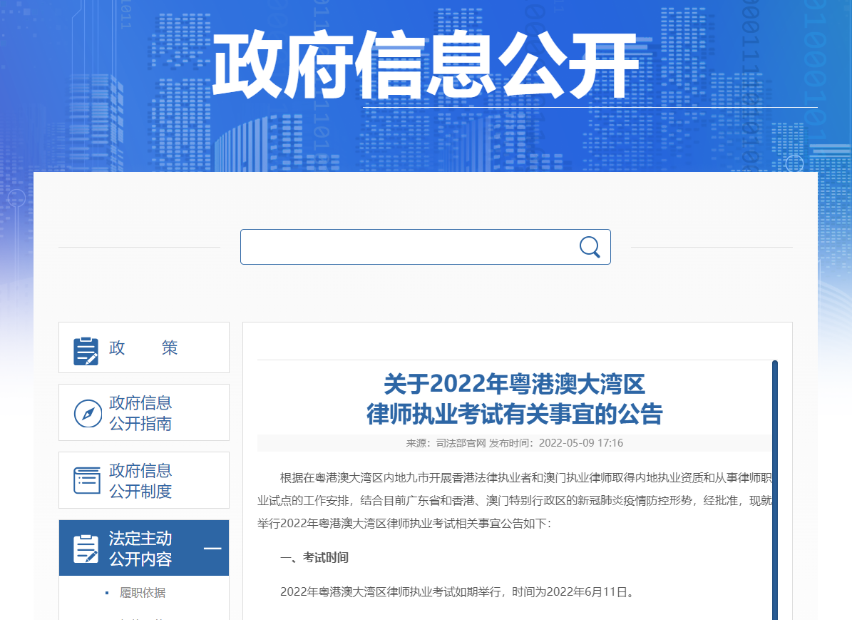 2022年粵港澳大灣區(qū)律師執(zhí)業(yè)考試如期舉行,時(shí)間為2022年6月11日。