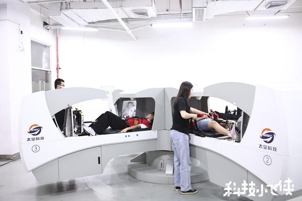 除了太空廢棄物處理實(shí)驗(yàn),航天訓(xùn)練體驗(yàn)也得到了孩子們的認(rèn)可。活動(dòng)現(xiàn)場,短臂離心機(jī)、模擬失重床等設(shè)備模擬出了航天員的日常訓(xùn)練場景,還沒等講解老師解說完,就有不少小飛俠們歡呼雀躍,迫不及待地想體驗(yàn)航天員日常訓(xùn)練,旋轉(zhuǎn)、漂浮,小朋友們玩得不亦樂乎,在玩樂的同時(shí),也學(xué)習(xí)到了更多航天知識(shí)。