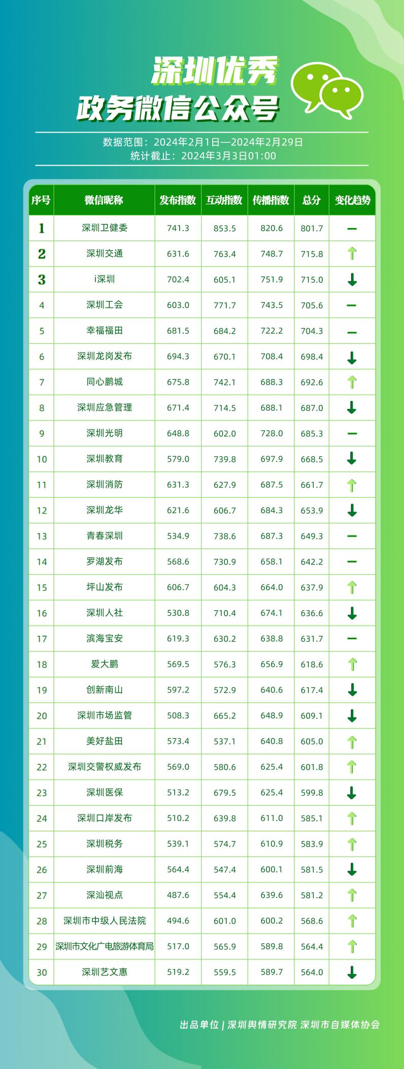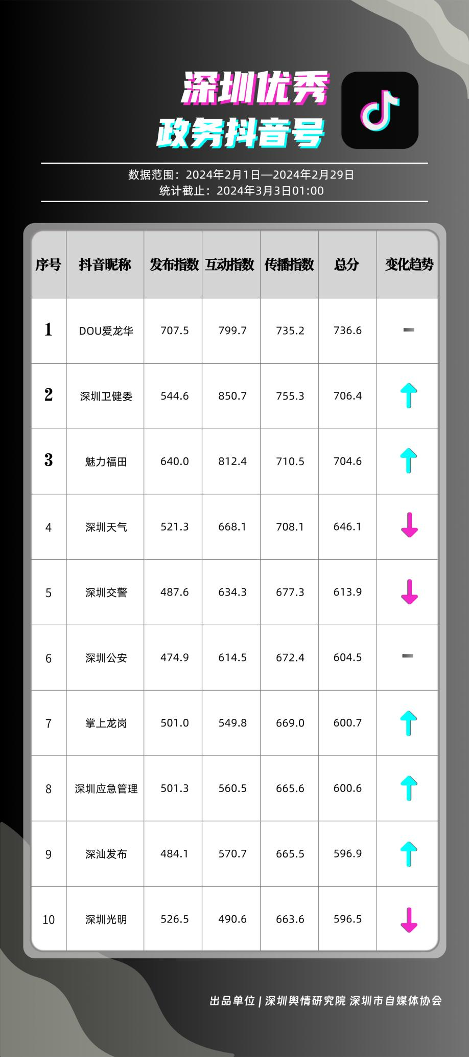 記者關(guān)注到,2月深圳優(yōu)秀政務(wù)新媒體矩陣共10個,展現(xiàn)出多單位在鍛造政務(wù)新媒體優(yōu)質(zhì)矩陣方面取得的良好成效,助力深圳政務(wù)新媒體矩陣健康有序發(fā)展。