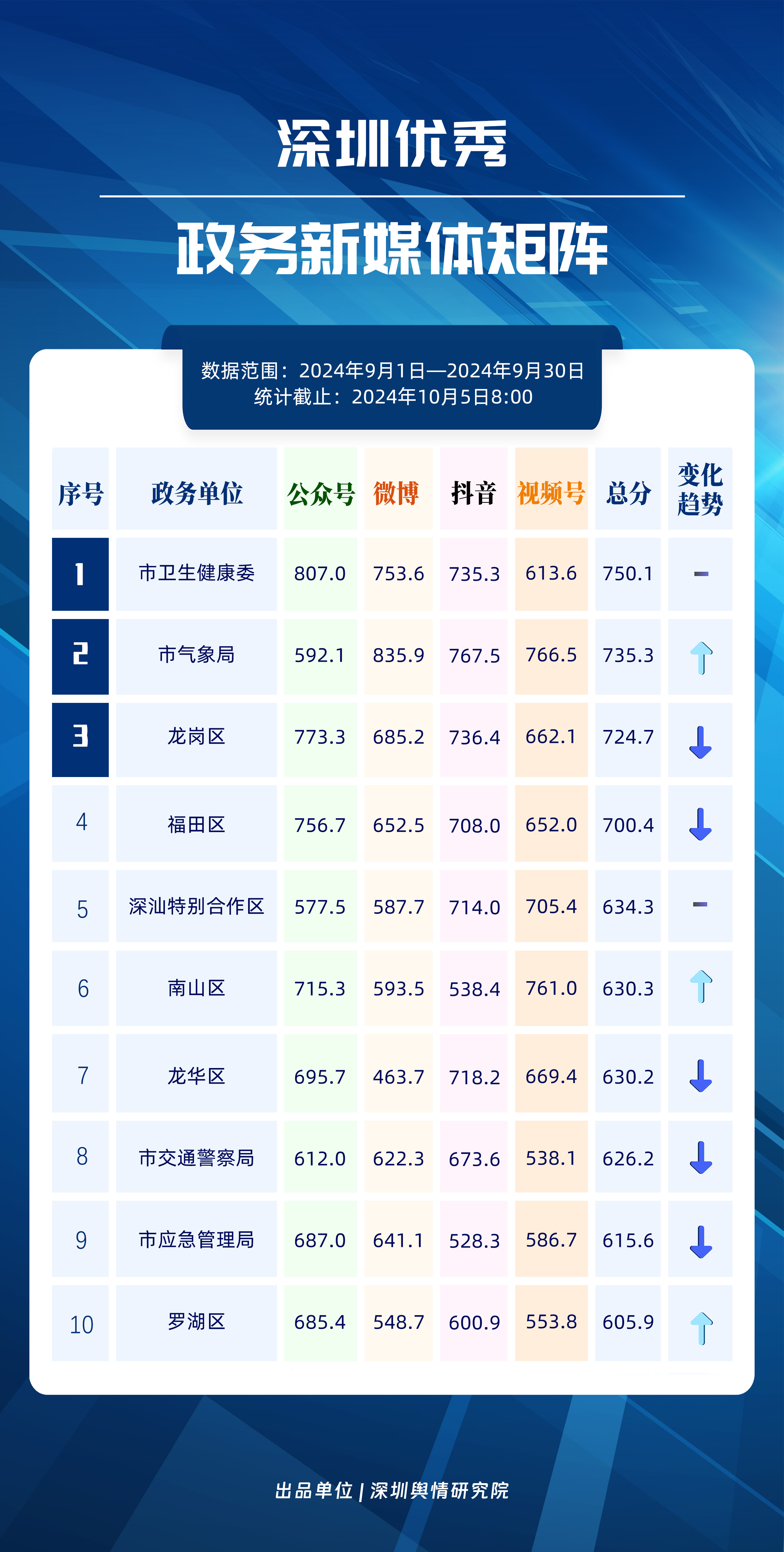 本期迎來的是《深圳優(yōu)秀政務(wù)新媒體矩陣》2024年9月榜單,讓我們共同見證,哪些新媒體矩陣能夠憑借卓越的表現(xiàn)嶄露頭角,成為推動政務(wù)傳播與服務(wù)創(chuàng)新的佼佼者。