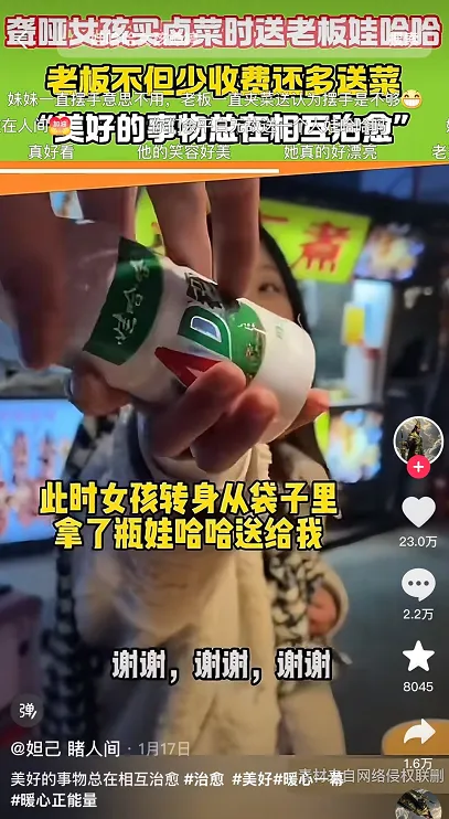 聾啞女孩買鹵菜時送老板娃哈哈