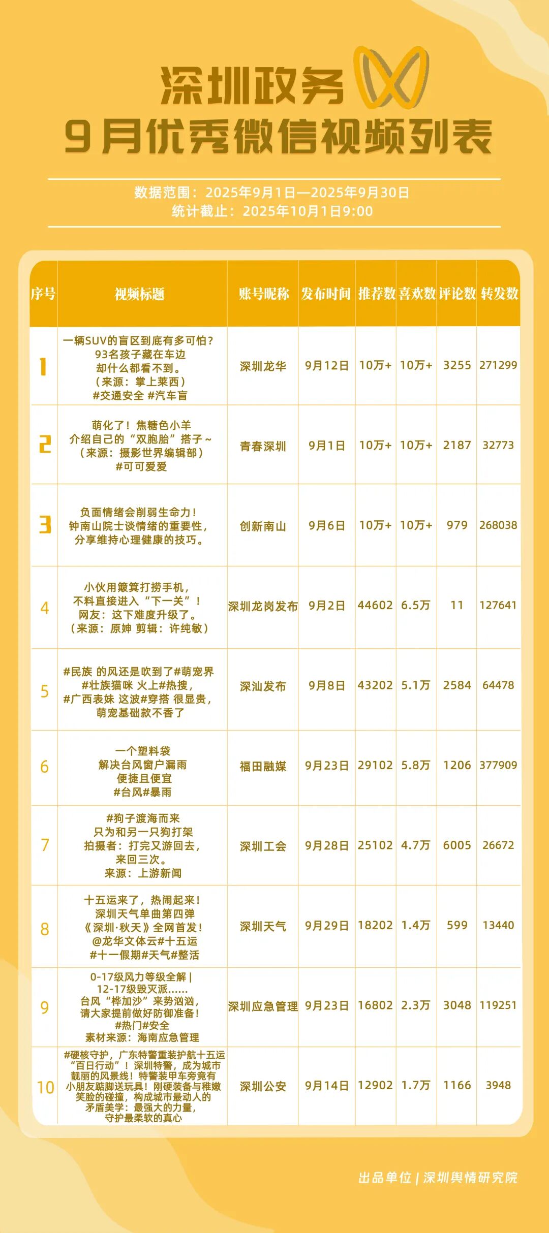 四、9月深圳優(yōu)秀政務新媒體賬號