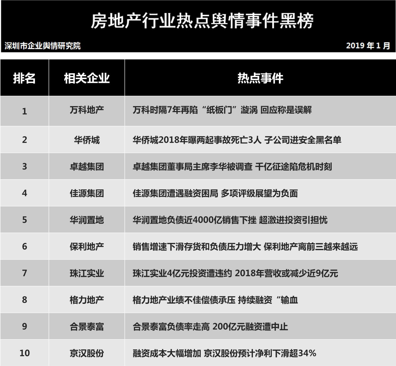 1月31日,深圳企業(yè)輿情研究院發(fā)布第十二批企業(yè)輿情榜單。本次榜單重點(diǎn)聚焦房地產(chǎn)及醫(yī)藥保健兩個(gè)行業(yè)。